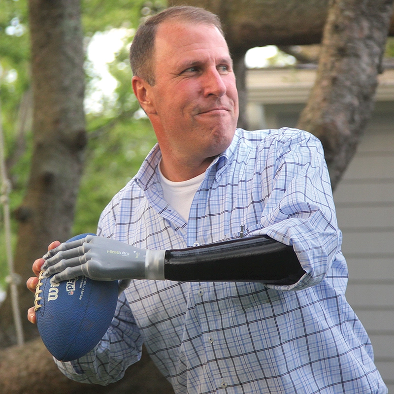 Early post-operative prosthetic options were limited in those days, but an innovative NIH occupational therapist fit Benning with a makeshift device just two weeks after surgery. That rapid-response approach to upper-limb rehabilitation eventually gained widespread acceptance, especially in light of a 1984 paper that identified the first 30 days after amputation as the “Golden Period” for initial fitting of an arm prosthesis. Benning continued to work with the same OT for the next 15 years, while staying with his first prosthetist at Hanger Clinic for nearly two decades.