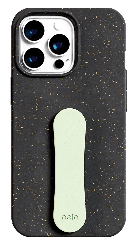 Specialized cases can simplify use for anyone with upper-limb difference or hand-propelled mobility aids. Suction-equipped models will stick on almost any surface, facilitating one-handed use. Pela cases (pelacase.com) use pliable organic materials, making them easy-on/easy-off. Keebos (keebos.com) has lanyard-equipped cases that hang around your neck.