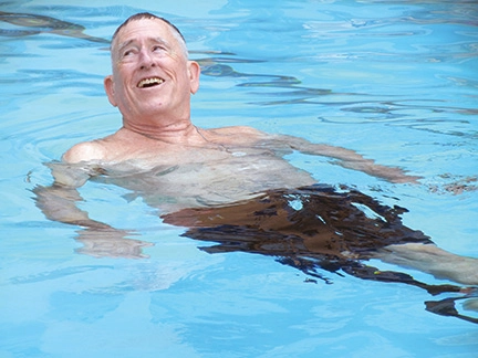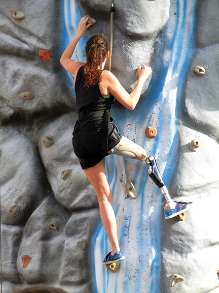 Davis has other active hobbies as well. He took up tennis about 11 years ago and is one of the few people in the country who have an above-knee and a below-knee amputation who can play standing. He also dabbles in scuba diving, horseback riding, cycling, sailing, water skiing, bowling, and wall climbing.