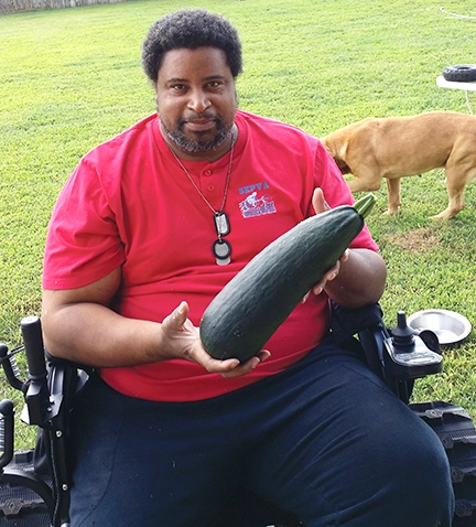 Davis is a believer in staying fit, so he finds ways to work with the physical aspects of gardening. Rather than use his wheelchair or modified tools when tending to his garden in Spartanburg, South Carolina, he usually removes his prosthetic legs and sits on the ground to plant, weed, or harvest. He has also adapted gardening methods to fit his physical abilities, like using a raised plant bed. Once, while cultivating his garden, he asked his kids to bring him his gardening tools and a piece of plastic pipe.